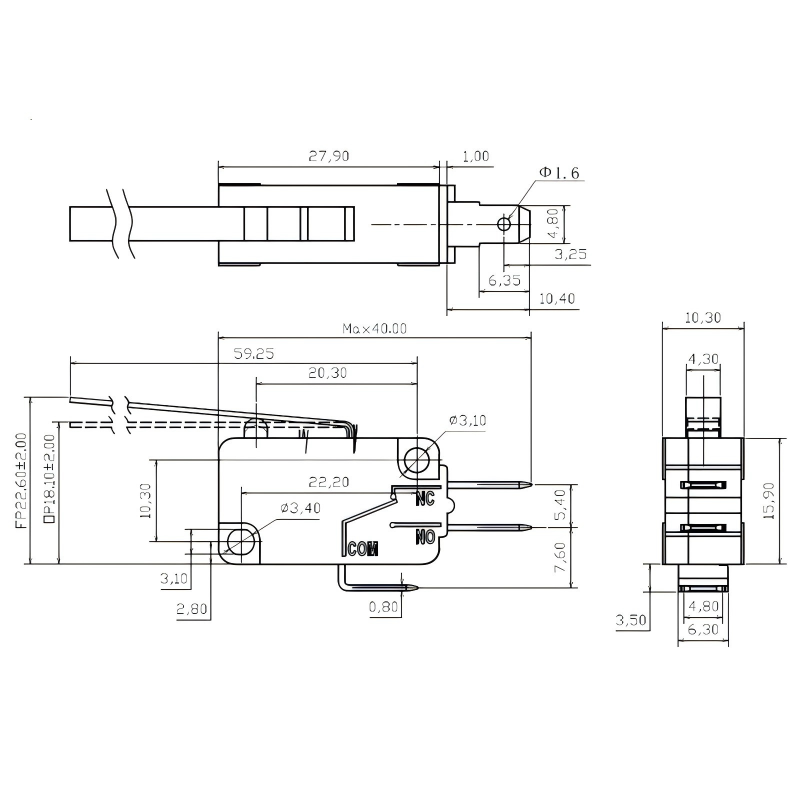 मिलिसेकेन्ड-सटीक ट्रिगरिङ: ०.५-१.६mm को छोटो यात्रा र ०.२५-४N को समायोज्य अपरेटिङ फोर्सको साथ स्न्याप-एक्शन फास्ट मेकानिज्म प्रयोग गर्दछ, "झूटा ट्रिगरहरू" लाई प्रभावकारी रूपमा रोक्न द्रुत र ढिलाइ-रहित प्रतिक्रिया प्रदान गर्दछ। माइक्रोवेभ ओभन ढोका नियन्त्रण र औद्योगिक सेन्सर जस्ता उच्च परिशुद्धता परिदृश्यहरूको लागि उपयुक्त।