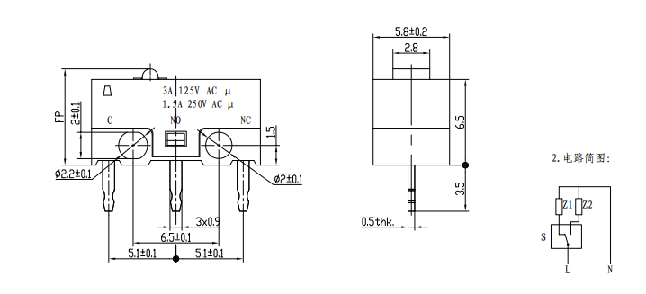| 1 | विद्युतीय मूल्याङ्कन: 1A/3A 250VAC |